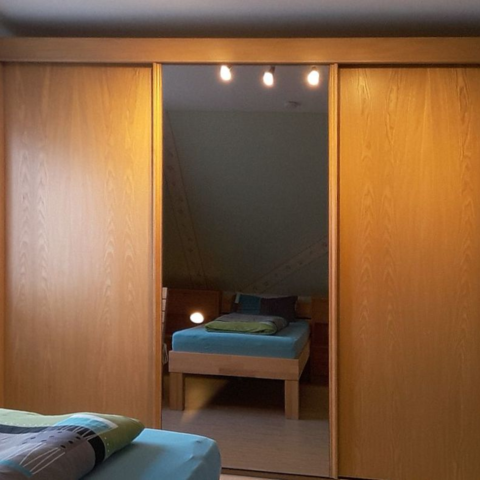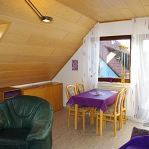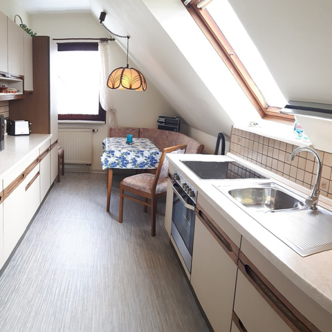 Ruhige 3-Zimmer Monteurwohnung für 2 - 4 Erwachsene im Dachgeschoss (66 m²), mit 2 Schlafräumen (1x Doppelbett, 2x Einzelbetten), Küche, Bad und WC getrennt, WiFi / WLAN, Sat-TV, Balkon.
