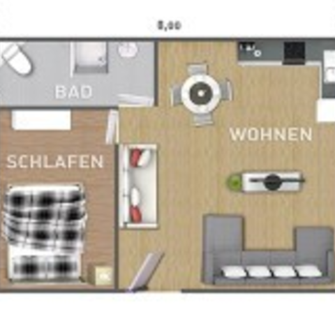 2-3 Personen auf 35qm, 2 Zimmer mit bis zu 3 Betten, komplett eingerichteter Einbauküche, 1 Bad Duschkabine, Sonnen-Dachterrasse, mehrere kostenlose Stellplätze, auch für einen LKW, Garten, Grillplatz und kostenloses WiFi.