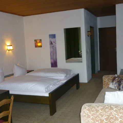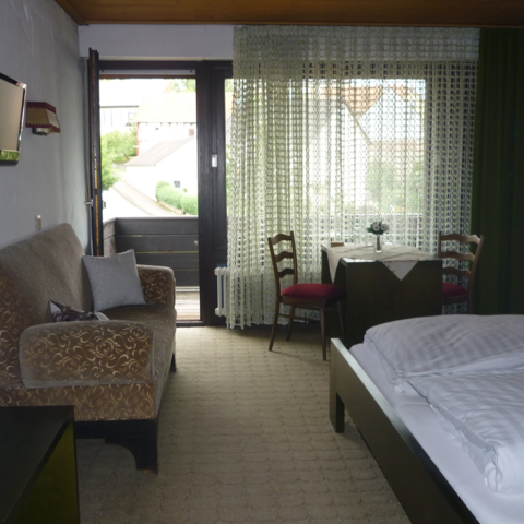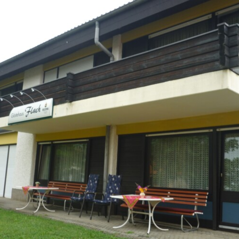 Unser separates familienfreundliches Gästehaus mit Terrasse, Balkon und Liegewiese ist sehr ruhig gelegen und etwa 150 m von der Gaststätte entfernt. Verfügbar sind 4 geräumige DZ/Dusche/WC mit Terrasse und 1 DZ/Dusche/WC mit großem Balkon, das ebenfalls als EZ buchbar ist. Das Gästehaus ist mit zwei voll eingerichteten Gemeinschaftsküchen ausgestattet, die jederzeit von den Gästen genutzt werden können. Alle Zimmer bieten einen Flachbild-TV und WLAN. Ein reichhaltiges Frühstück und gutbürgerliche Küche wird in der Gaststätte angeboten. Parkplätze sind kostenfrei.
