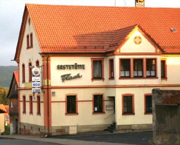 Unser separates familienfreundliches Gästehaus mit Terrasse, Balkon und Liegewiese ist sehr ruhig gelegen und etwa 150 m von der Gaststätte entfernt. Verfügbar sind 4 geräumige DZ/Dusche/WC mit Terrasse und 1 DZ/Dusche/WC mit großem Balkon, das ebenfalls als EZ buchbar ist. Das Gästehaus ist mit zwei voll eingerichteten Gemeinschaftsküchen ausgestattet, die jederzeit von den Gästen genutzt werden können. Alle Zimmer bieten einen Flachbild-TV und WLAN. Ein reichhaltiges Frühstück und gutbürgerliche Küche wird in der Gaststätte angeboten. Parkplätze sind kostenfrei.