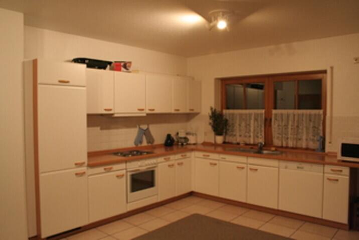 des im Schwarzwaldstil erbauten Hauses. Sie ist aufgeteilt in drei Schlafzimmer, ein Wohnzimmer und eine große Wohn-Essküche.