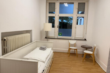 Auf drei großzügigen Etagen bietet die Unterkunft insgesamt 30 helle Zimmer mit hohen Decken und großen Fenstern, die eine freundliche Atmosphäre schaffen.
