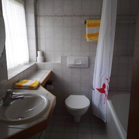 Wir haben Zimmer mit Bad (Dusche bzw. Badewanne und WC) und Zimmer mit Dusche, WC auf dem Flur.
