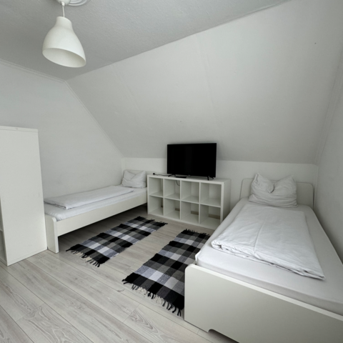 Küche (komplett ausgestattet), 2, Bäder, (3 separate WCs) und selbstverständlich Einzelbetten. Unser Standort (Aubing bei München) garantiert exzellente Verkehrsanbindung zu den Autobahnen und Sie sind in 20 Minuten in der Stadt. Einkaufsmöglichkeiten und Restaurants befinden sich fußläufig.