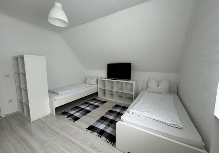 Küche (komplett ausgestattet), 2, Bäder, (3 separate WCs) und selbstverständlich Einzelbetten. Unser Standort (Aubing bei München) garantiert exzellente Verkehrsanbindung zu den Autobahnen und Sie sind in 20 Minuten in der Stadt. Einkaufsmöglichkeiten und Restaurants befinden sich fußläufig.