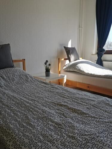 Die Wohnung ist voll möbliert. Ausgestattet mit Küche inkl. Geschirr, (Töpfe, Pfannen, Teller, Besteck usw.) Bad / Dusche, TV und Internet. Sie verfügen über Einzelbetten (keine Etagenbetten) in Mehrbettzimmern inkl. Bettwäsche. Eine Waschmaschine steht zur kostenfreien Nutzung ebenfalls bereit.