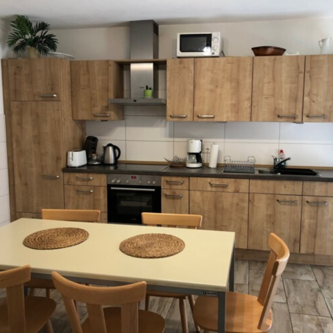 Küche: Zu jeder Wohnung gehört eine komplett ausgestattete Gemeinschaftsküche mit Herd, Backofen,