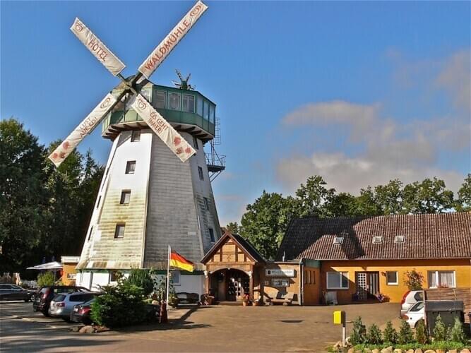 Das Hotel waldmühle ist ein kleines Familienhotel in ruhiger Lage in Suhlendorf 12 km östlich von Uelzen es verfügt über 20 DZ, 4 EZ und 2 Ferienbungalows.Die Zimmer sind mit Bad/WC und TV, teilweise kostenloses W-Lan. Das Hotel verfügt über eine Gaststube, ein Restaurant, ein Turmcafe, einem großen Saal und einer großen Terrasse. PKW Stellplätze sind vorhanden auch für kleinere LKWs.