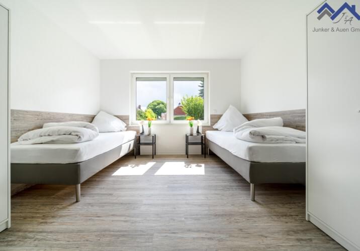 Neubau von 4 Wohneinheiten (Erstbezug) mit separatem Eingang, Wohnküche mit Fernsehecke und 80er Flachbild TV, komplett eingerichtete Einbauküche incl. Geschirrspüler, Mikrowelle, Waschmaschine, Bad mit Dusche, Doppelzimmer (auch als Einzelzimmer buchbar), eigene Terrasse, Internet
