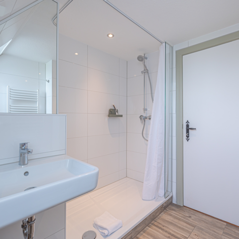 · besteht die Möglichkeit, nasse und verschmutzte Kleidung in einer Gruppenumkleide außerhalb der Apartments abzulegen.