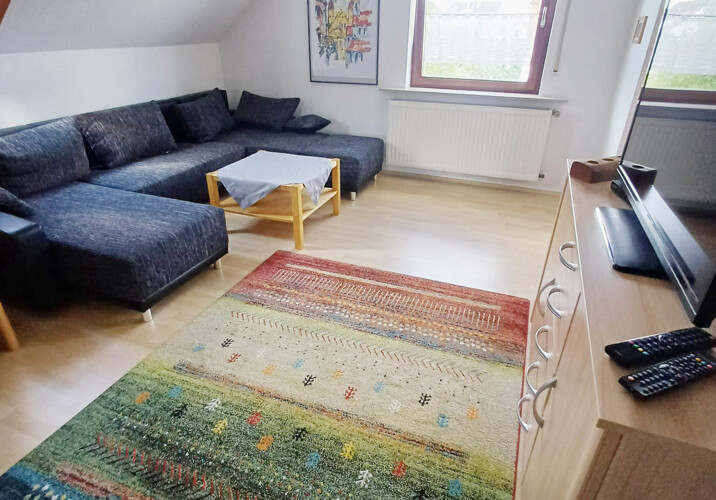 Das Wohnzimmer und die Küche sind komfortabel ausgestattet. Eigene Waschmaschine vorhanden.