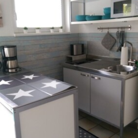 Ausstattung: Küche mit Backofen, Kühl-/Gefrierschrank, 2 Cerankochfelder, Mikrowelle, Kaffeemaschine etc, Waschmaschine vorhanden. Wohn-/Schlafraum mit LED-TV mit DVD, CD-Player, ink Wlan