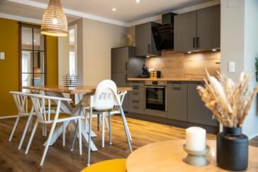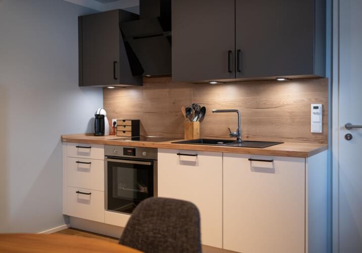 Für unsere Geschäftsreisenden bieten wir schöne voll ausgestattete Wohnungen mit Schlafzimmern, Küche, großem Wohn-/essbereich, Bad/Dusche, WC und teils Terrasse an. Bei uns habt ihr die Möglichkeit zwischen zwei Buchungsvarianten zu wählen und in der Premium Kategorie das PrivatSpa, den Fitnessraum und den Außenpool direkt mit dazu zu buchen. Oder klassisch nur das Apartment zur Eigennutzung.
