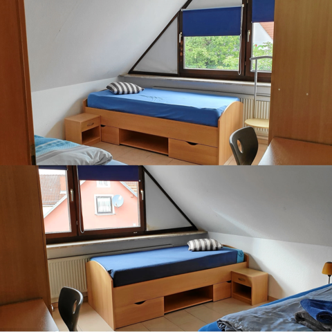 1 x Monteurwohnung mit 9 Betten. 4 x Doppelzimmer, 1 x Einzelzimmer, 2 x Aufenthaltsraum mit TV, Raucherbalkon, 2 x Küche, 1 x Bad, 2 x Dusche, 3 x WC