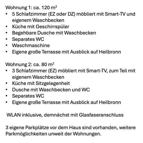 Wohnung 2: 5 Einzelzimmer (davon 3 Zimmer als DZ buchbar) inkl. Küche, Bad, WC und Terrasse