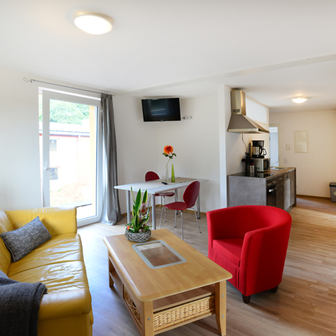 1 Wohn- Esszimmer und 1 Bad. Alle Zimmer sind mit TV,
