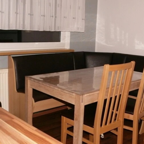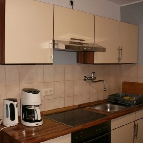 Einbauküche,Herd mit Backofen, Kühlschrank,Kaffeemasch.,Wasserkocher ,Toaster, ausreichend Geschirr und Töpfe,CD/ Radio,Waschmaschine usw.