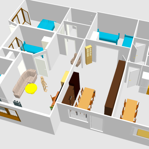 Komfort Belegung 6 Personen (2 x Einbettzimmer und 2 x Zweibettzimmer auch als Einzelzimmer)