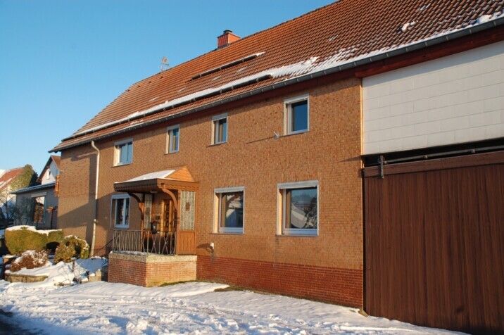 Die Wohnung im Obergeschoss verfügt über 4 Schlafzimmer, die jeweils mit Doppelbetten ausgestattet sind. Das Badezimmer ist mit Dusche und Eck-Badewanne ausgestattet. Die Küche ist modern und zweckmäßig eingerichtet und befindet sich in einem Raum mit dem geräumigen Esszimmer. Angrenzend befindet sich das Wohnzimmer mit Zugang zum Balkon mit Blick auf den Bramwald.