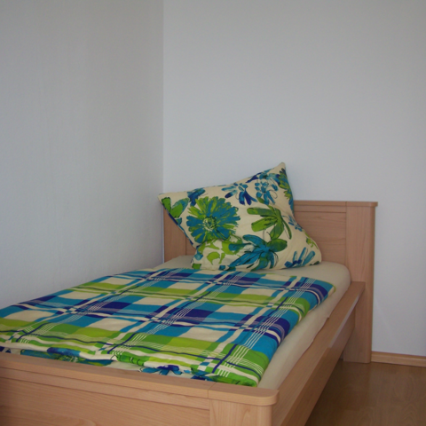 - Das Bett für die 5. Person ist ein Zustellbett mit hochwertiger Matratze und kann wahlweise in einem der Einzelzimmer oder im Wohnzimmer aufgestellt werden.