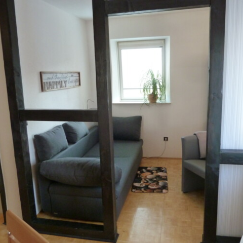 - Großer offener Wohn-/Essbereich mit SAT-TV und Radio, angrenzendem Separee mit Schlafcouch + kl. Schrank, über Lamellenvorhang optisch abtrennbar, kleine Büroecke mit Schreibtisch.