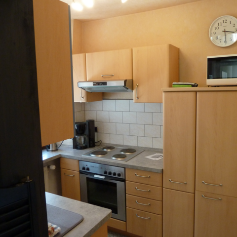 - Küche mit allen benötigten Geräten & Besteck, Töpfen, Wasserkocher sowie Mikrowelle und Kaffeemaschine, Elektroherd m. Backofen, Geschirrspüler, Kühl-/Gefrierkombi, Mikrowelle usw. ausgestattet