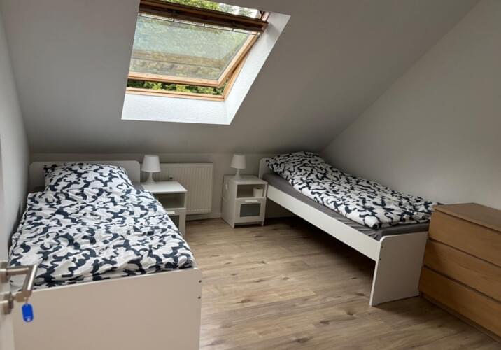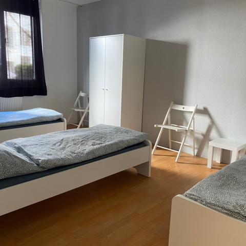 Unsere Unterkünfte sind praktisch ausgestattet, jedes Zimmer mit Einzelbetten, Schrank/Kommode