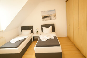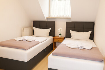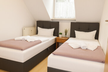 • Bequeme, getrennte Einzelbetten – ideal für Kollegen