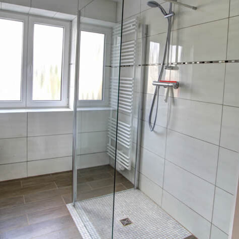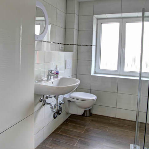 3 Duschen und 3 Küchen als auch 4 WC sind zur gemeinsamen Nutzung vorhanden.