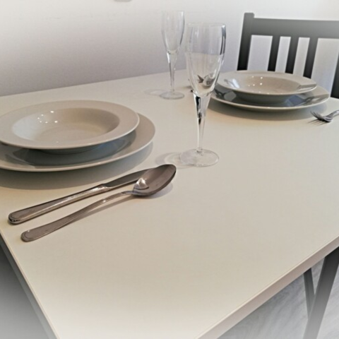 Esstisch befindet sich ebenfalls in der Wohnung.