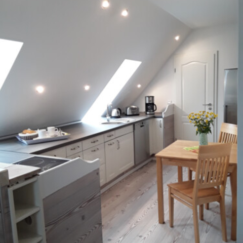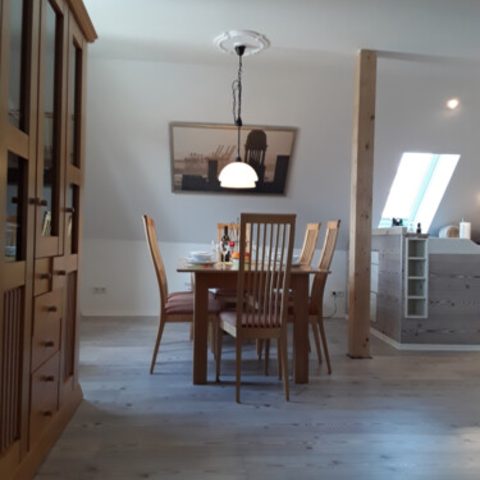 Die Wohnung hat ca. 70 qm aufgeteilt in einem gr. Wohn und Essbereich mit Küche die Platz findet für bis zu 8 Personen.