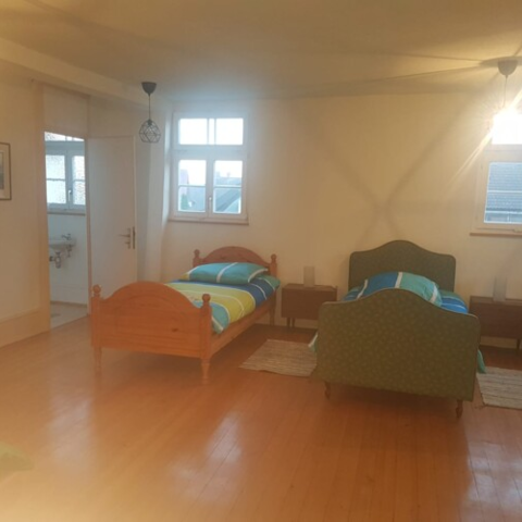Flexible Aufteilung, auch Extrabetten in den Zimmern möglich. Preise ab EUR 18.-. 2 Wohnungen zu vermieten für bis zu 7 Personen. Preis nach Vereinbarung, je nach Dauer wie lange Sie bleiben, Rabatt für Gruppen und längere Aufenthalte. Einfach kurz anrufen, auch abends und am Wochenende.