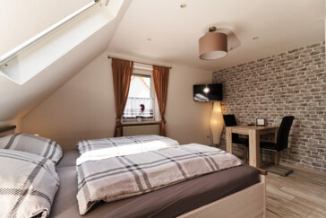 Im DG unseres Hauses befindet sich das Zimmer 2 bieten im Dopplbett Platz bis zu 2 Personen. Dieses verfügt über ein geräumiges Badezimmer mit Dusche und WC. Handtücher stehen selbstverständlich jedem Gast zur Verfügung.