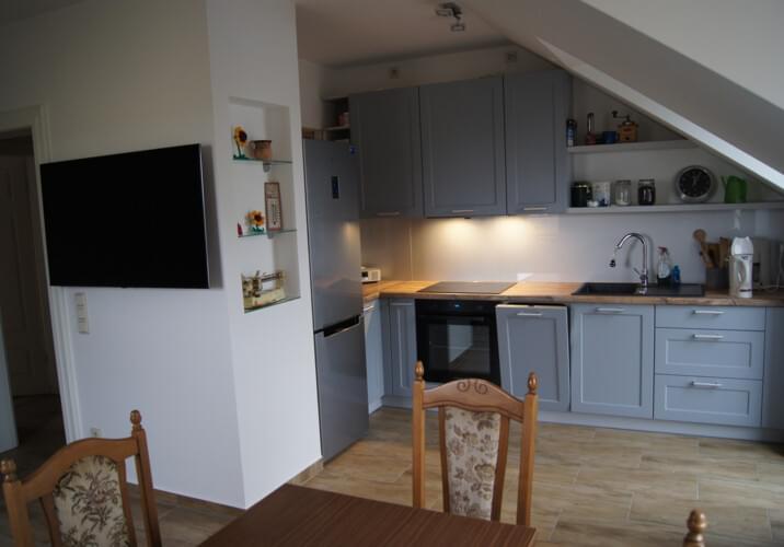 Unsere Ferienwohnung ist für 1 bis 6 Personen ausgelegt eine weitere Person kann auf den Sofa untergebracht werden. Die Wohnung hat 1 Schlafzimmer mit Doppelbett für 2 Personen, und 2 Schlafzimmer mit je zwei Einzelbetten. Jedes Zimmer ist ausgestattet mit einen TV. Eine Wohnküche mit allen nötigen Kochutensilien. Modernes Bad mit Dusche,Waschbecken,WC. Im Treppenhaus befindet sich noch ein WC. Nichtraucherwohnung,aber im Außenbereich besteht die Möglichkeit des Rauchens. Desweiteren befindet sich ein großer Parkplatz für Fahrzeuge aller Art direkt im Grundstück.