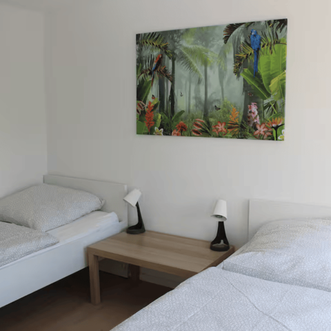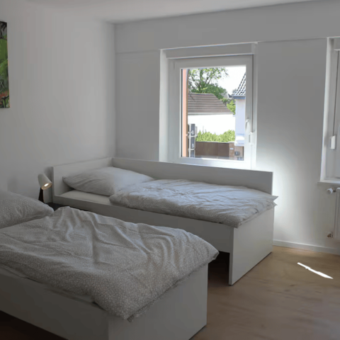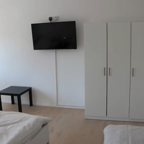 - Schlafzimmer mit Einzelbetten, Schlafcouch, Kleiderschrank/Kommode/Garderobe