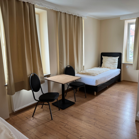 Wir bieten Einzelzimmer sowie Doppelzimmer in einfacher, möblierter Ausstattung mit WC, Dusche und Waschbecken.