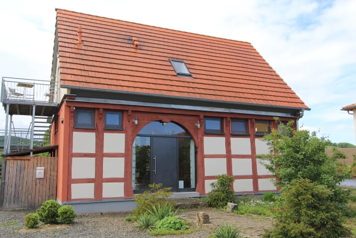 Die Wohnung befindet sich im Dachgeschoß eines Ferienhauses.