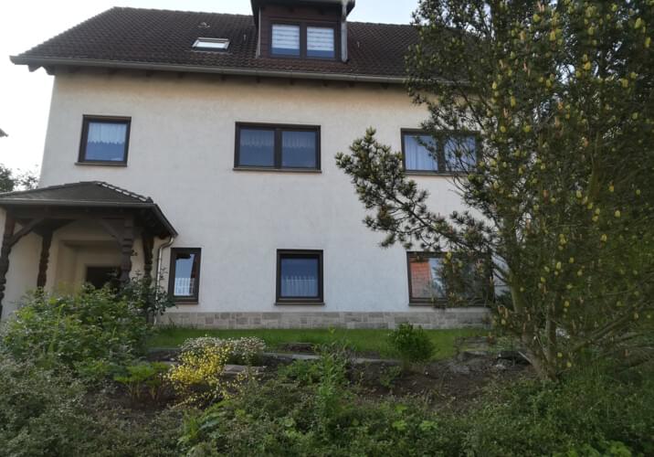 Die möblierte Wohnung (60m²) bietet Platz für 1 bis 3 Personen und befindet sich in der unteren Etage eines Einfamilienhauses. Sie verfügt über ein Bad mit Dusche, Küche, Flur, Wohnzimmer und kann wahlweise mit einem oder zwei Schlafzimmern gemietet werden. Im Wohnbereich befindet sich ein Arbeitsplatz (Schreibtisch). Die Autostellplätze sind vor dem Haus.