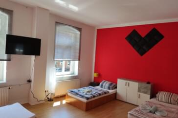 Es handelt sich um eine voll möblierte Wohnung in einem sanierten Mehrfamilienhaus in Zwickau für max. 5 Personen. Sie hat zwei große Zimmer mit insgesamt 5 separaten Betten und diversen Schränken. Es gibt ein Bad mit Dusche, einen Flur sowie eine separate, komplett eingerichtete Küche mit Kühlschrank, Herd mit Backofen, Kaffeemaschine, Küchenradio, Mikrowelle, Wasserkocher uvm. Der Mietpreis beinhaltet Strom, Wasser, Heizung, WLAN, 2x Flat-TV mit Internet-TV, Küchenradio, Waschmaschine, Handtücher, Bettwäsche und 14-tägiger Reinigung. Das Rauchen ist nach Absprache aus dem Küchenfenter heraus erlaubt.