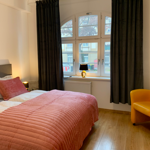 Sie wohnen in einem Mehrfamilienhaus in einer ruhigen Wohngegend in der Nähe der Innenstadt - im Haus gibt es zwei Ferienwohnungen mit je 4 Schlafzimmern.