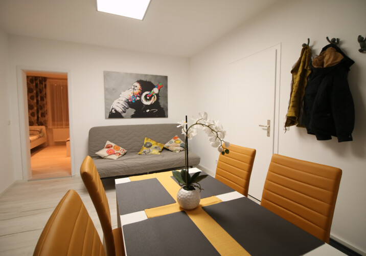 Auf 35m² werden Ihnen alle Vorzüge einer voll eingerichteten Wohnung geboten. Sollten Sie zu zweit unterwegs sein, bietet sich durch 2 Einzelbetten genügend Schlafmöglichkeiten. Durch das praktische Schlafsofa hätten Sie sogar Platz für bis zu 2 weitere Personen.