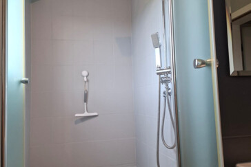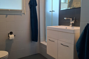 Das Bad verfügt über WC, Dusche und Waschmaschine.