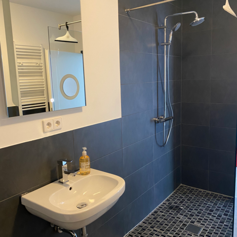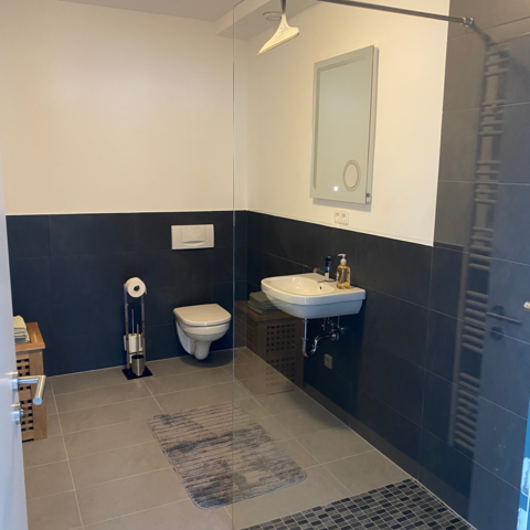 Gemütliche komplett neue Unterkunft im ruhigen Mischgebiet (Wohnen/Gewerbe). Direkt am Waldrand. Moderne Einrichtung mit Wohnfühleffekt. Bodenebene Dusche. Separater überdachter und geschlossener Raucherraum ist vorhanden.
