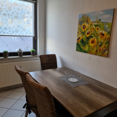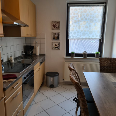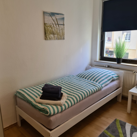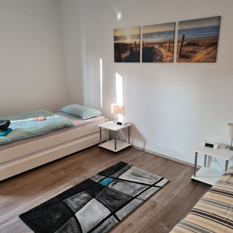 Die hellen und gemütlichen Zimmer sind mit jeweils eigenem WLAN-fähigen 43" TV und neuen Einzelbetten ausgestattet. Bettwäsche und Handtücher werden gestellt. Im geräumigen Bad befindet sich eine Dusche, ein Waschbecken und ein großes Fenster. Die Einbauküche kann gerne samt Inventar und Elektrogeräten genutzt werden.