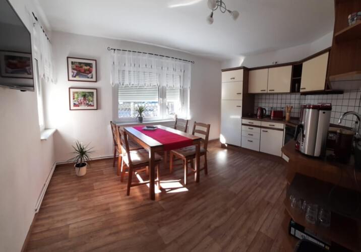 Die Wohnung ist ausgestattet mit einer großen Wohnküche mit TV, einem Schlafzimmer als Doppel oder Zweibettzimmer, einem Wohnzimmer mit Schlafcouch sowie einem hochwertigen Badezimmer. Grillecke u. Sitzplatz im Außenbereich können mitbenutzt werden.