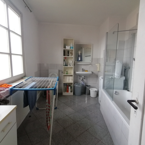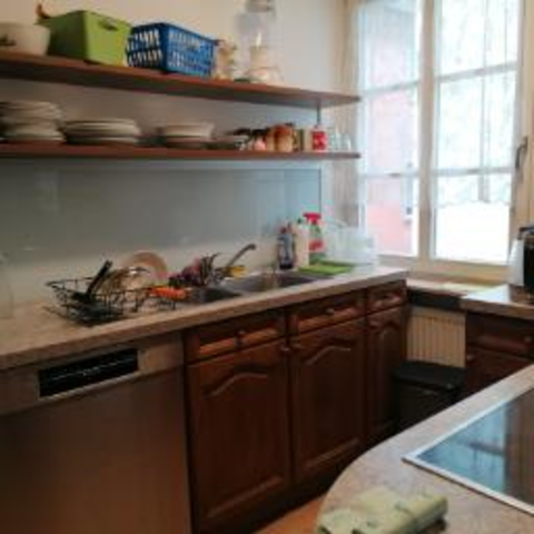 Zwei voll ausgestattete Küchen und zwei große Bäder (mit Dusche und WC) und je Stockwerk ein zusätzliches WC stehen den Bewohnern zur Verfügung.