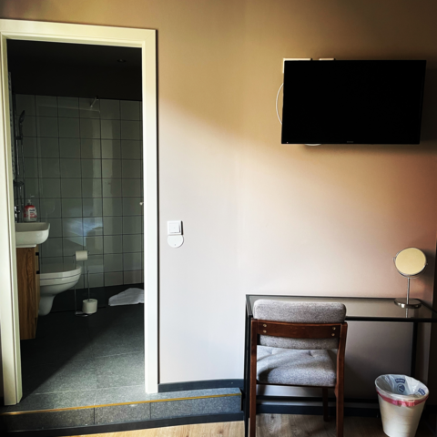 Gemütliche Zimmer mit Dusche und WC. Fernseher, WiFi und Kühlschrank!