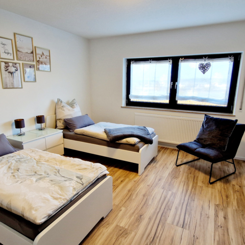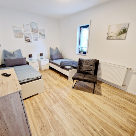 1 Schlafzimmer mit 2 Einzelbetten. 1 Schlafzimmer mit 3 Einzelbetten. Alle Schlafzimmer mit großen Fenstern und Flachbild TV Geräte inkl. WLAN und Netflix. In der kompletten Wohnung haben wir Fussbodenheizung.