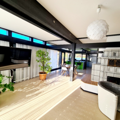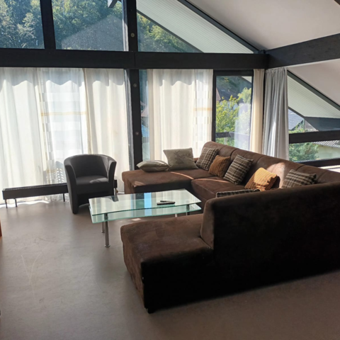 Im Wohnzimmer erwartet Sie ein gemütliches Sofa mit Flachbild TV inkl. Netflix und direktem Zugang zur Sonnenterrasse, ruhig gelegen mit Gartenmöbel und Gartenhaus.
