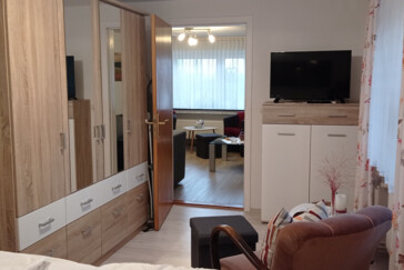 Im Wohnzimmer und Schlafzimmer ist je ein Smart-TV vorhanden.